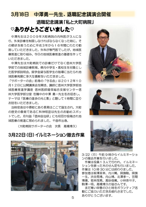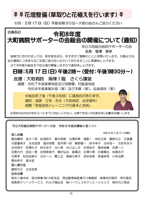 令和8年度大町病院サポーターの会総会の開催について 5月17 日(日)午後2時~